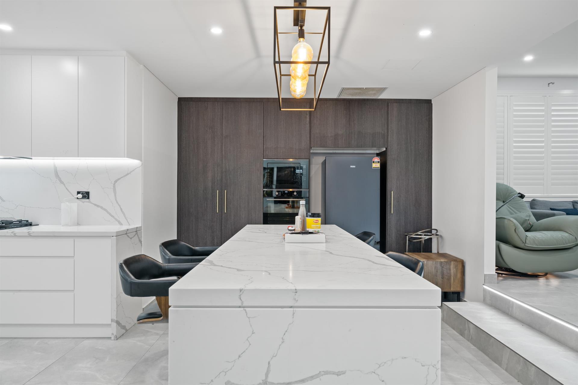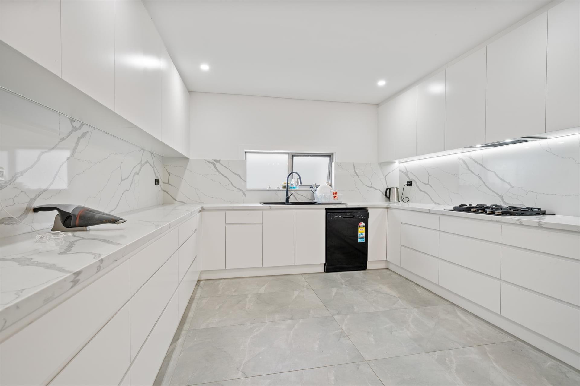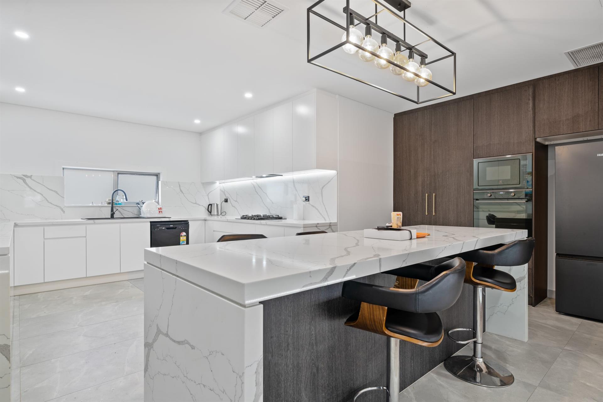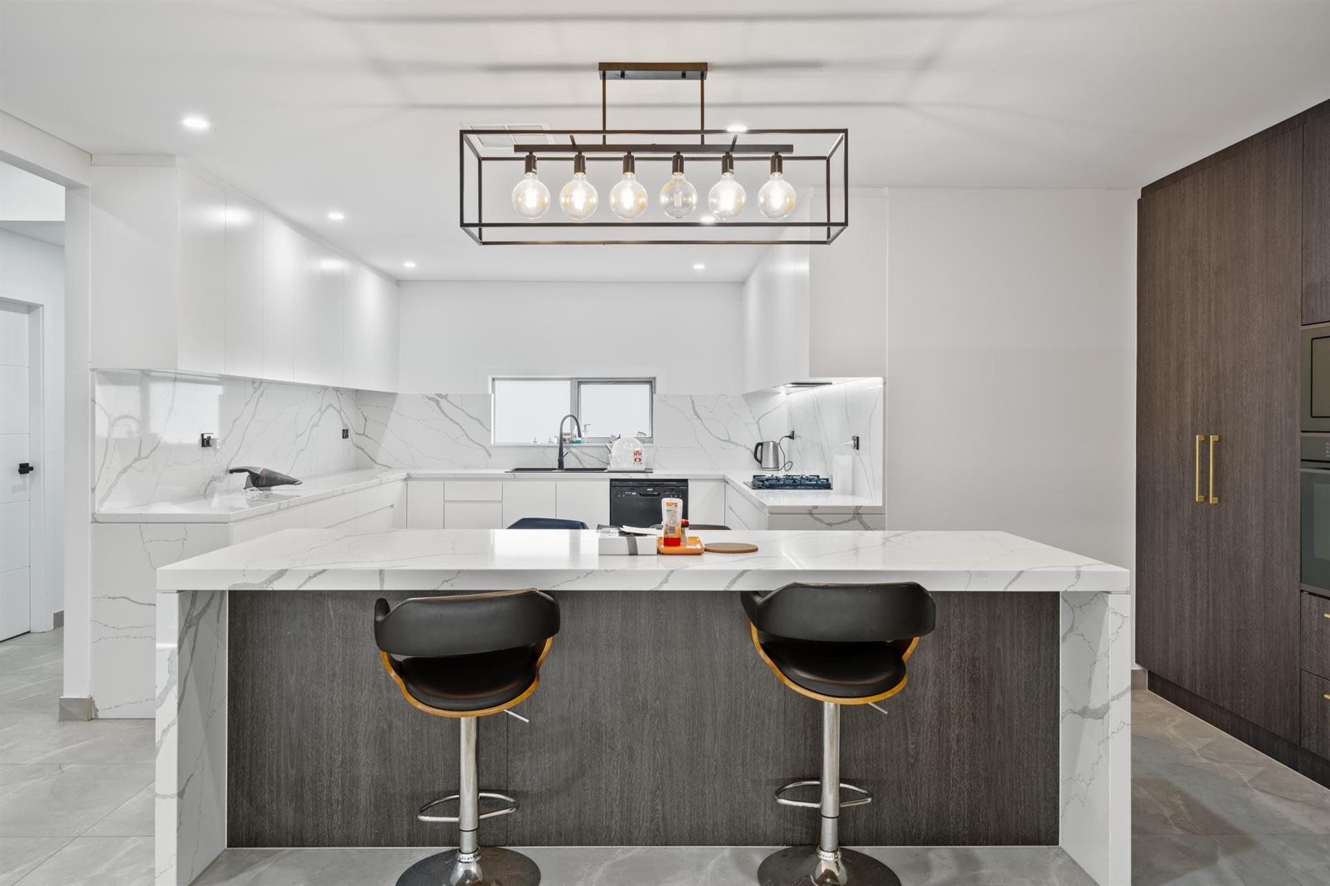 - Large gourmet kitchen with marble benchtops & stainless-steel appliances
